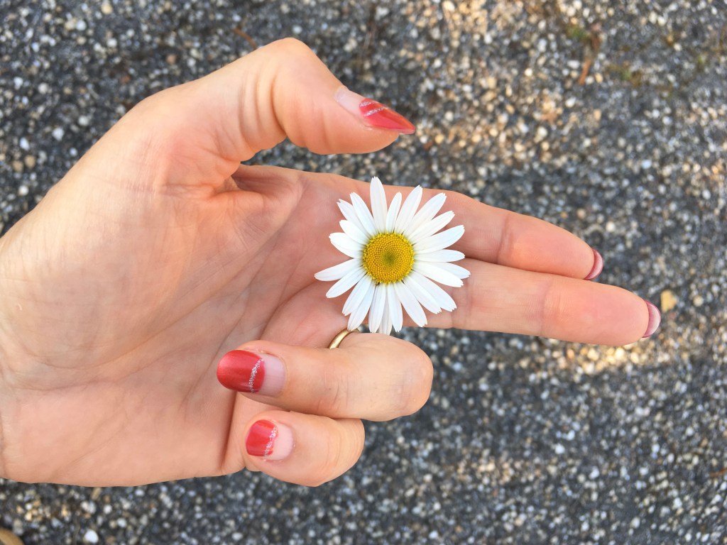 J’ai trouvé une sauvage Marguerite Éblouissante de beauté… Me suis inclinée devant cette magnifique inflorescence Pour admirer ses fleurons blancs ligulés Et observer l’abeille qui butinait En collectant le pollen dans ses pistils dorés Je l’ai cueillie, Me suis assise en tailleur dans le pré… Puis je l’ai patiemment effeuillée… Il m’aime, un peu, beaucoup, passionnément, à la folie, pas du tout… Elle m’a hurlé que je tu ne m’aimais plus Alors de dépit et de rage, ma belle marguerite, je l’ai tuée.
