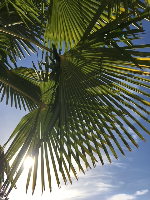 Entre les palmes au bord de moi Le grand éventail qui déploie L’invisible main du vent qui fait sa loi Qui dans mes cheveux chante ou aboie M’effleure et s’encastre une dernière fois