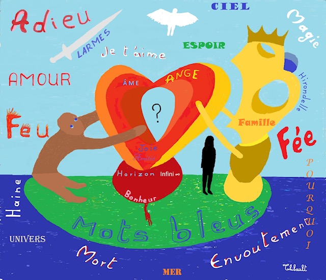 Entre ses mains Je ne sais plus rien Des lignes qu’il dessine enfin Des vives couleurs qu’il peint Des règles qu’il suit ou qu’il enfreint Fusionnent le mal et le bien.